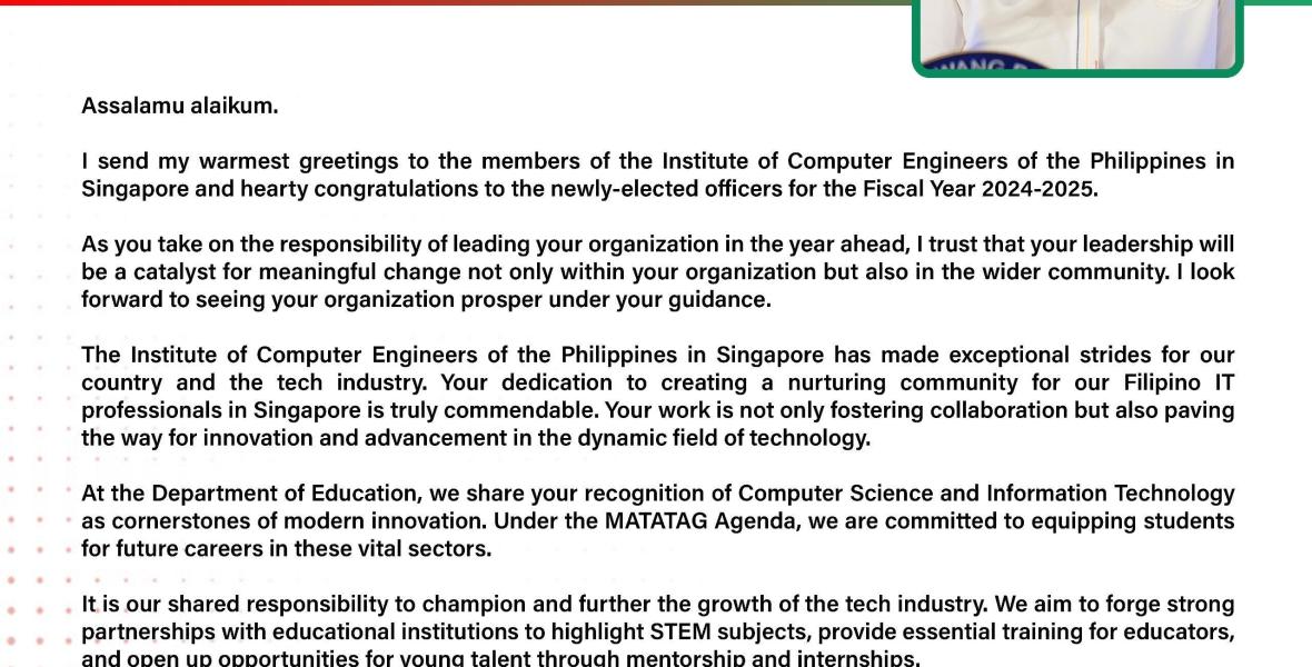 ICpEP Singapore greeted by Former Department of Information and Communications Technology (DICT) Secretary Engr. Emmanuel Caintic